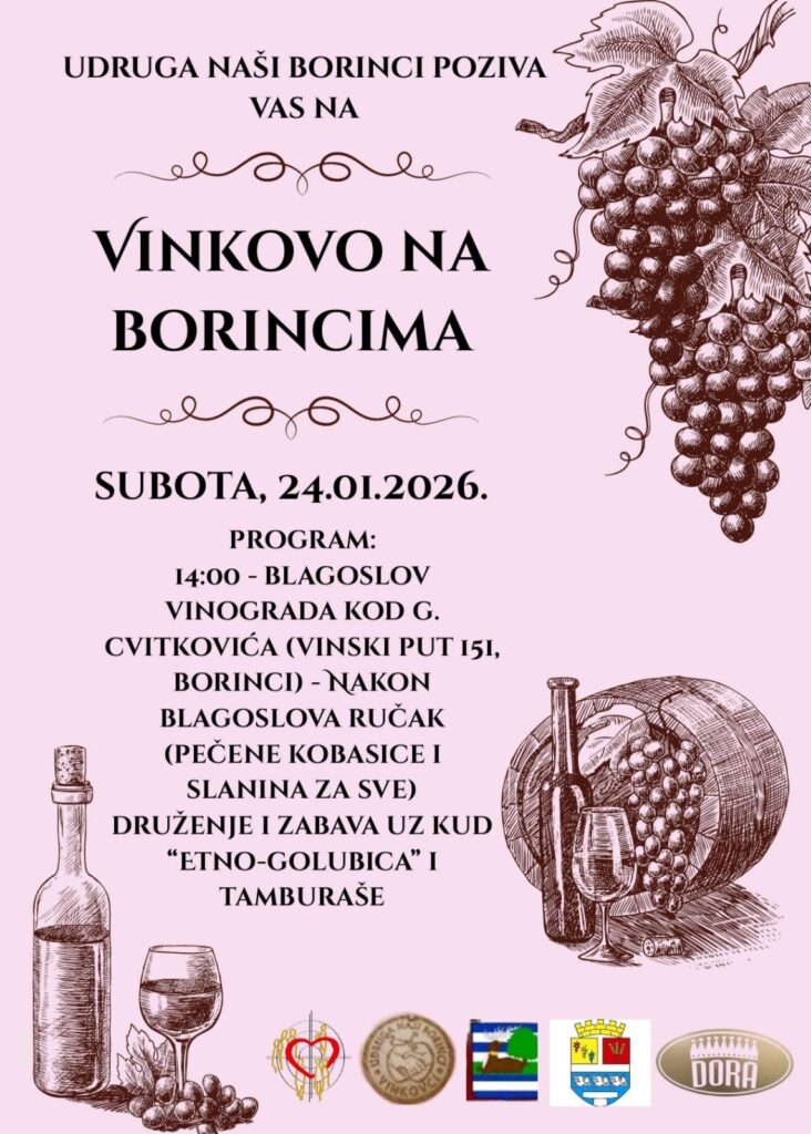Udruga naši Borinci organizira program povodom blagdana svetog Vinka i pozivaju vas sve da im se pridružite ove subote na blagoslovu vinograda i zajedničkom druženju.