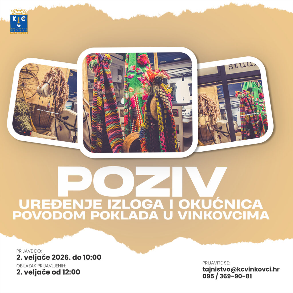 Tom prigodom Kulturni centar Vinkovci poziva građane, poduzetnike i obrtnike da se uključe u pokladno ozračje grada te urede svoje izloge i okućnice u duhu pokladnih običaja.